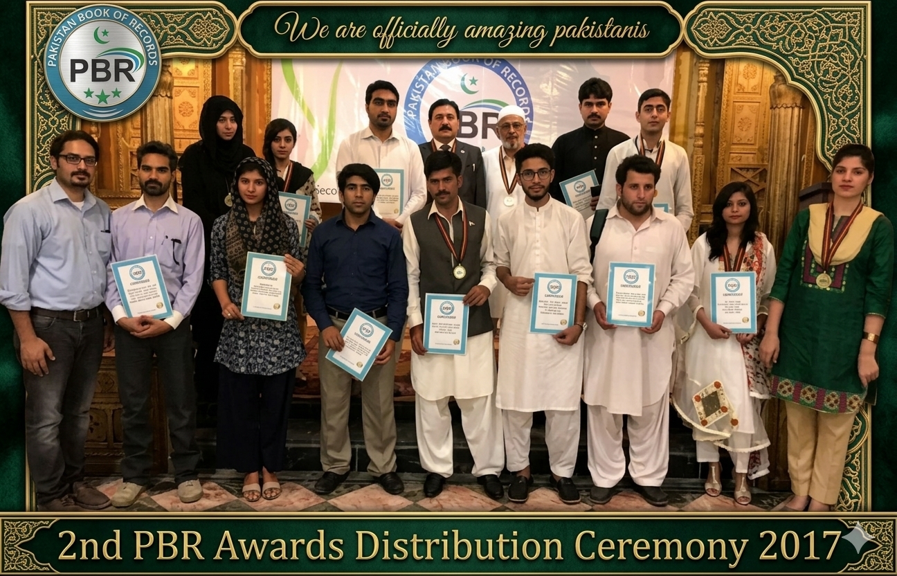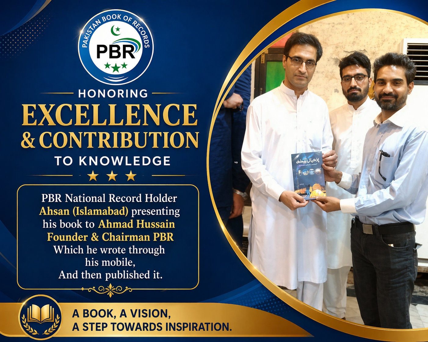 Pakistan Book of Records is a national platform dedicated to recognizing and celebrating remarkable achievements and talents across Pakistan. Modeled after the Guinness World Records, it showcases exceptional accomplishments in diverse categories such as sports, endurance, arts, science, technology, Intelligence and unique skills.
