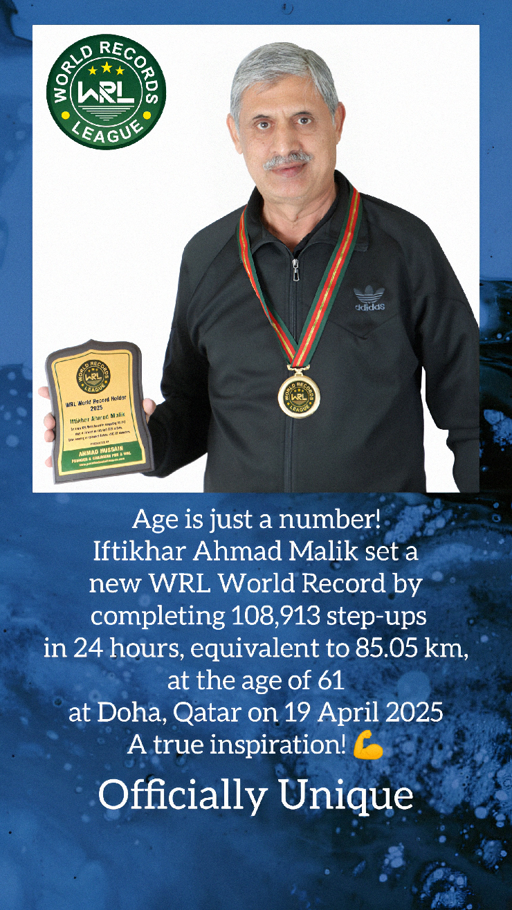 A global platform for world records where anyone can attempt to break or set WRL World Records, or submit the first verified achievement in any field. Records are officially recognized only after a comprehensive review and verification process supported by strong and credible evidence.